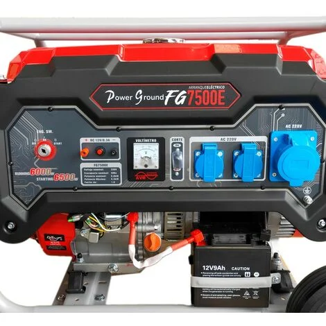 Générateur PowerGround de haute performance et de qualité avec démarrage électrique. Le modèle FG7500E fonctionne avec une grande puissance avec son moteur OHV 420CC 12.5HP. Système AVR innovant.